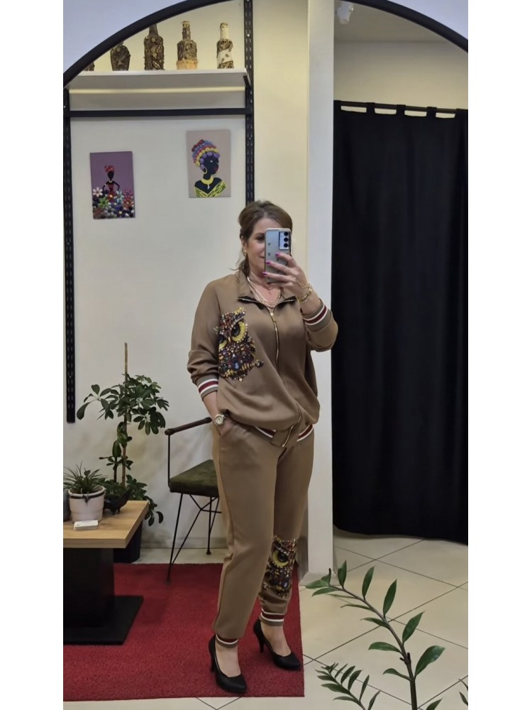 Baykuş ve Taş Detaylı Takım (A.Kahve)