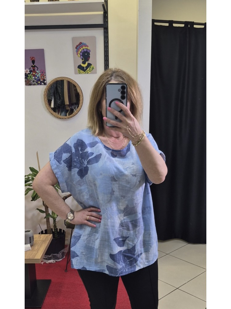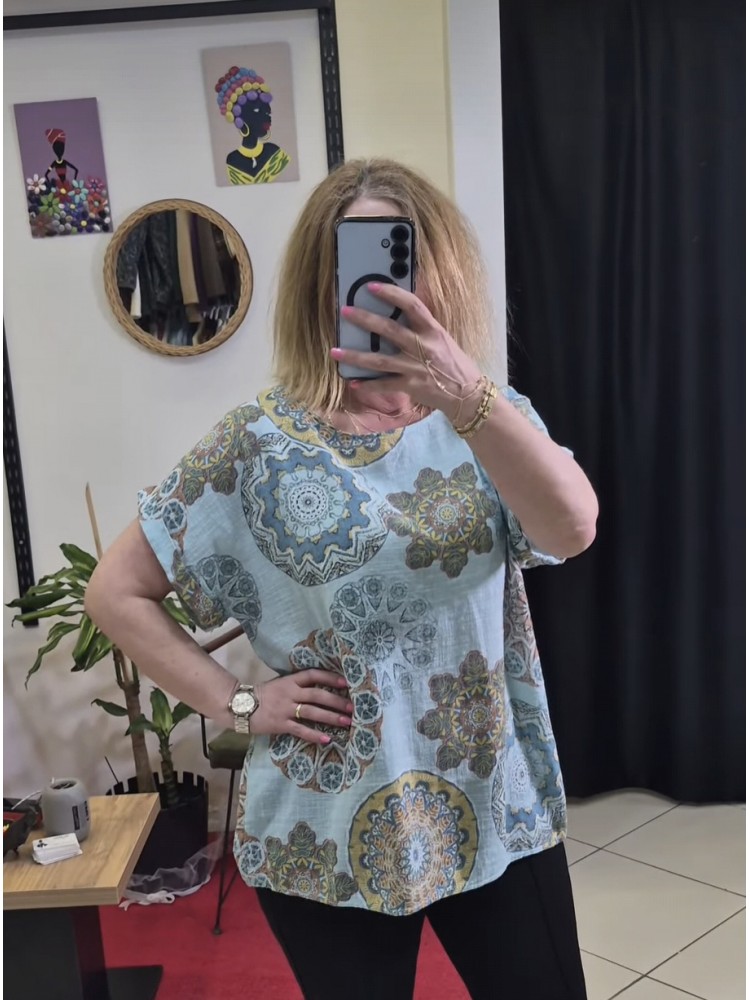 İTHAL PAMUK KETEN DESENLİ BLUZ