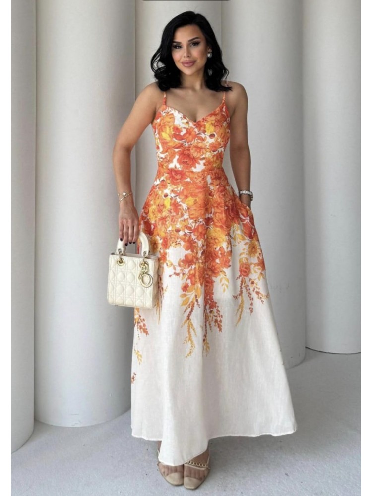 Byfolk Zimmerman model keten elbise turuncu desenli