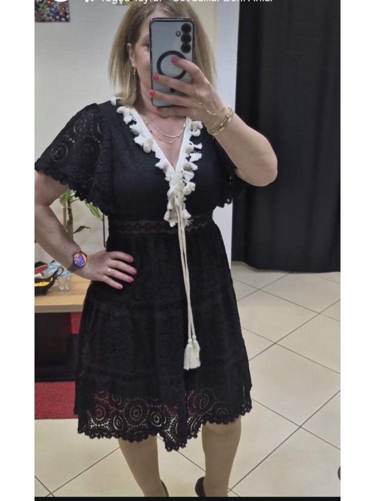 İTHAL FİSTO DETAYLI SİYAH ELBİSE