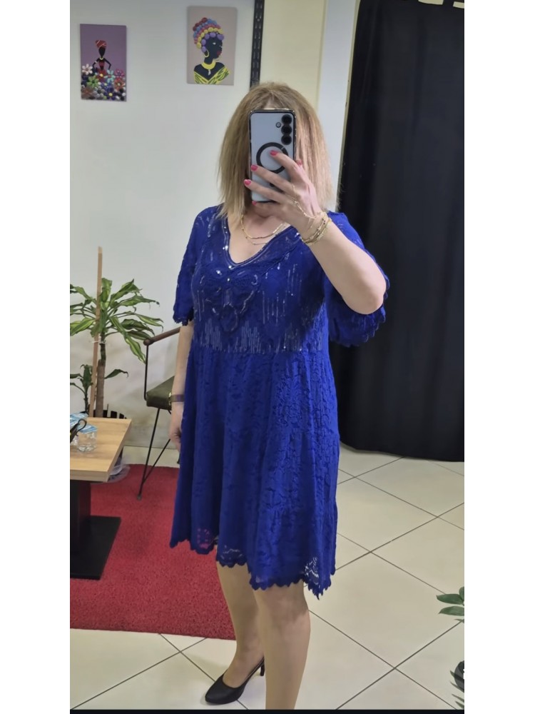 İTHAL KETEN PAYET DETAYLI SAKS ELBİSE