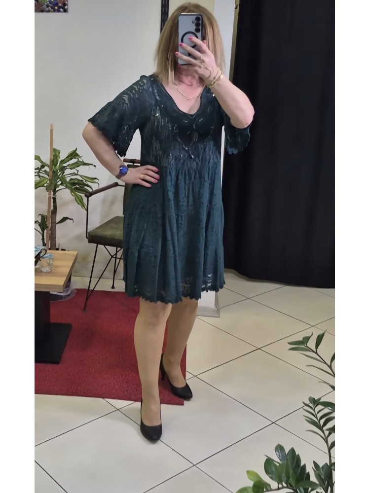 İTHAL KETEN PAYET DETAYLI K.YEŞİL ELBİSE